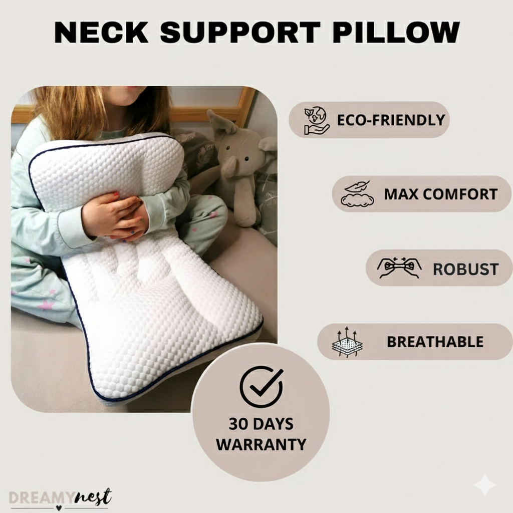 Proper neck and spine support is crucial for your child's growth and concentration. Standard pillows often fail to provide this support, leading to discomfort and potential long-term issues. Our ergonomic design promotes healthy neck and spine development for restful sleep.